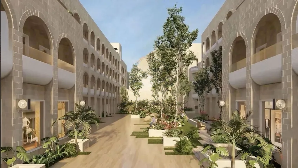 Комплекс включает большую рекреационную зону на открытом воздухе с обилием естественного света, общим бассейном, фонтанами, организованными зонами для отдыха и зелеными насаждениями.