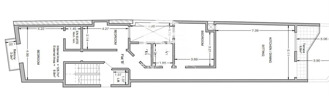 Bedrooms: 3, Bathrooms: 2, Inside Area: 126 sqm, Outside Area: 9 sqm