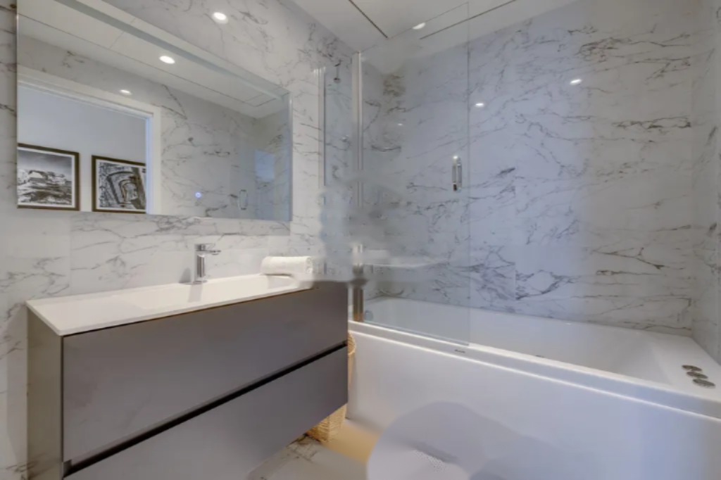 Спальня просторная и элегантно оформлена, а ванная комната оснащена высококачественной сантехникой. Жители имеют доступ к роскошным удобствам, включая общий бассейн, фитнес-центр и потрясающие панорамные виды на город и море, что идеально подходит для профессионалов или пар, ищущих шикарный городской образ жизни.