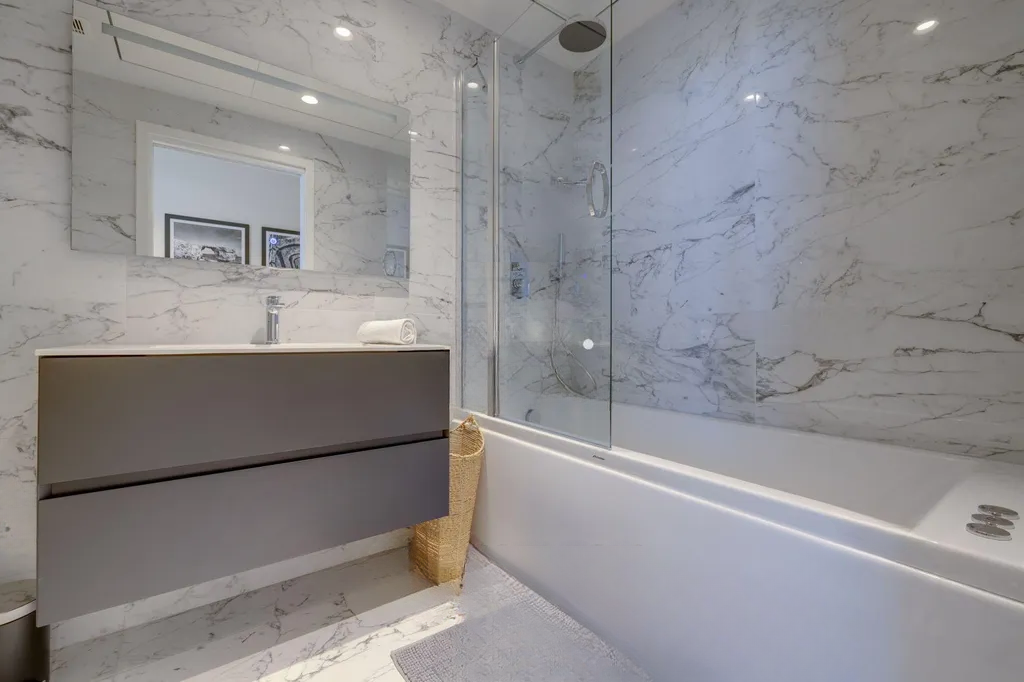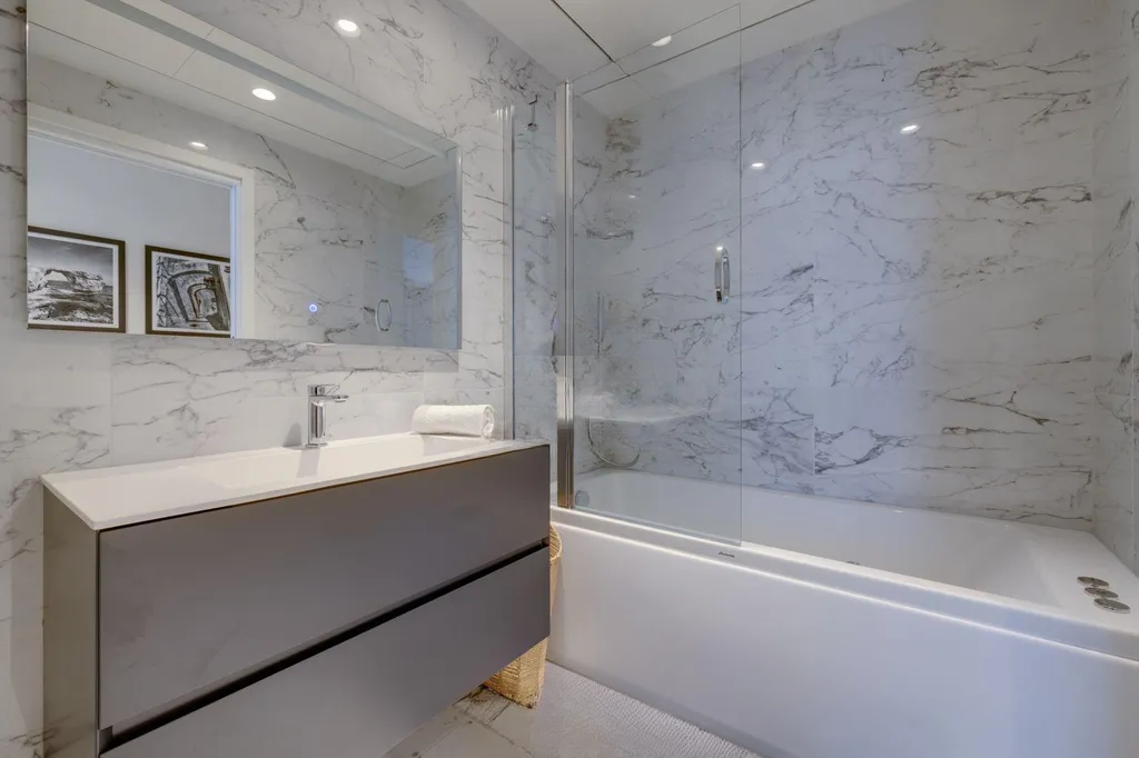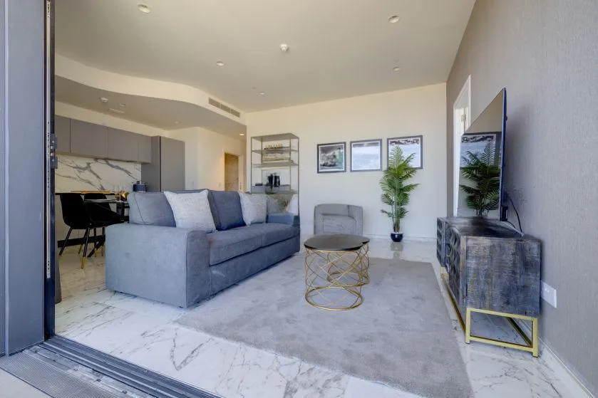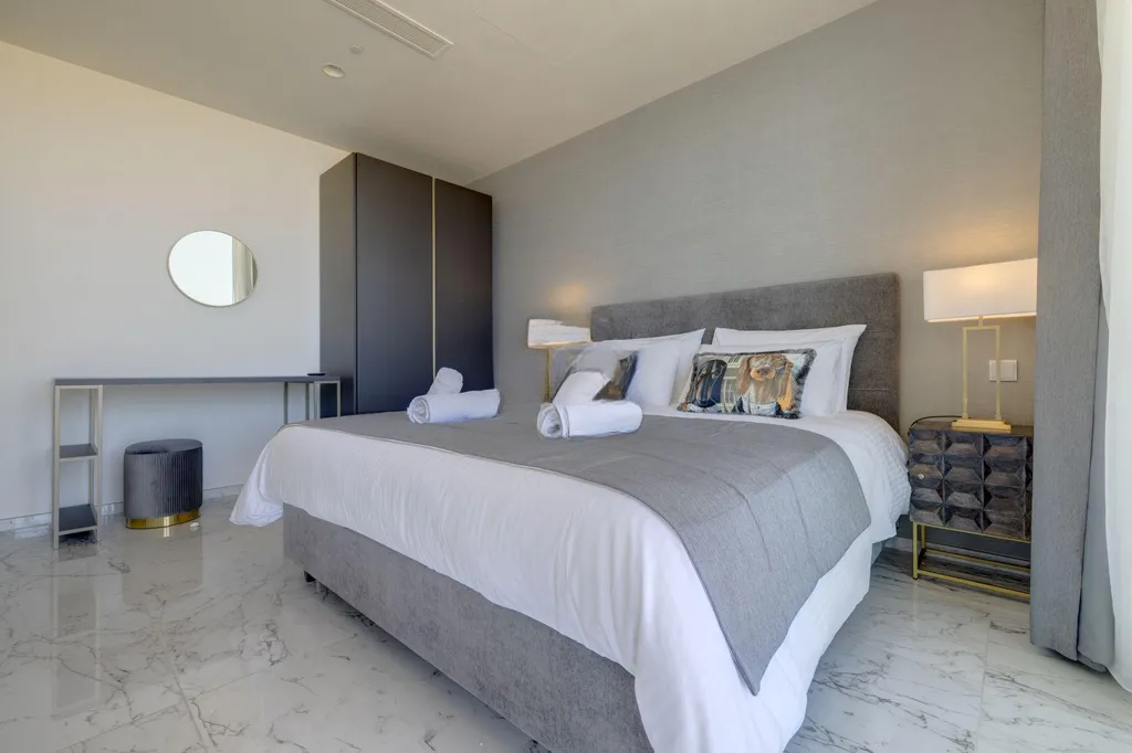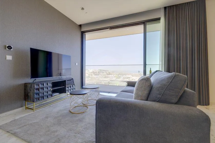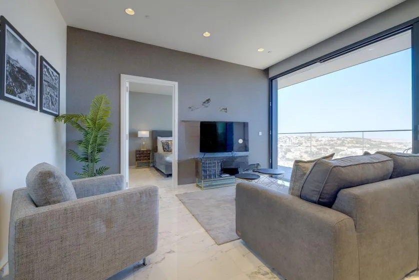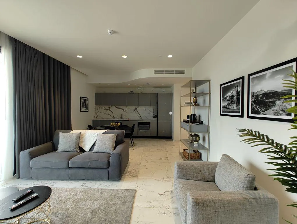 Спальня просторная и изысканно оформлена, а ванная комната оснащена высококачественными сантехническими приборами. Резиденты могут пользоваться роскошными удобствами, включая общий бассейн, фитнес-центр, а также наслаждаться захватывающими панорамными видами на город и море.