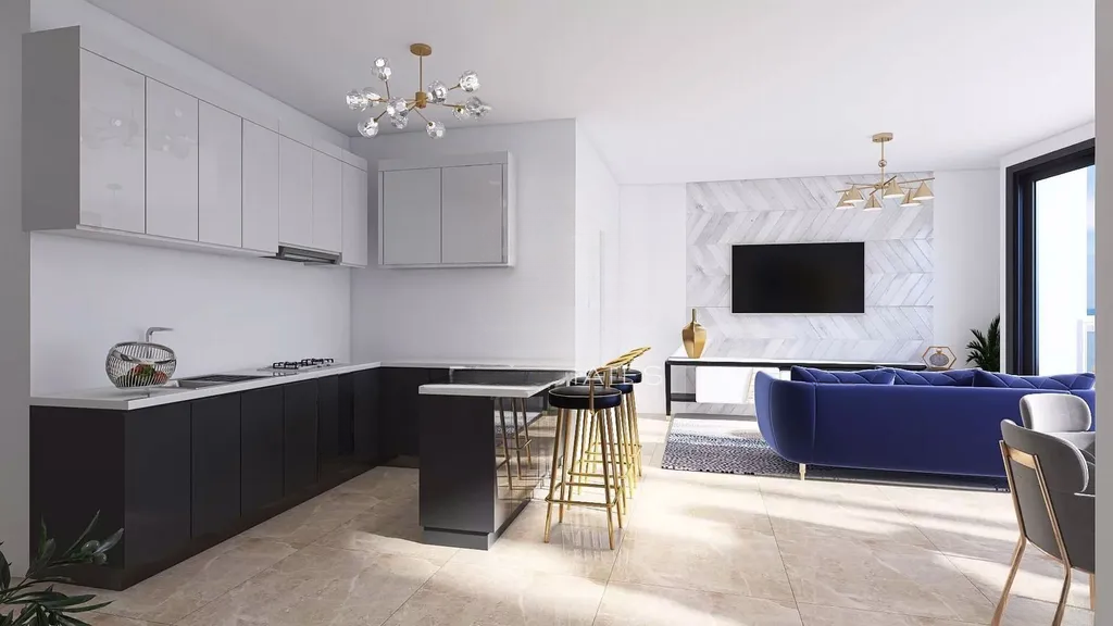 Расположенные в престижной части города, апартаменты еще строятся, а завершение работ ожидается в декабре 2025 года. Современный и стильный дизайн с высококачественной отделкой радует глаз. Хотя в пакете отделки не предусмотрены ванные комнаты и двери, остальная часть квартиры будет готова для заселения.