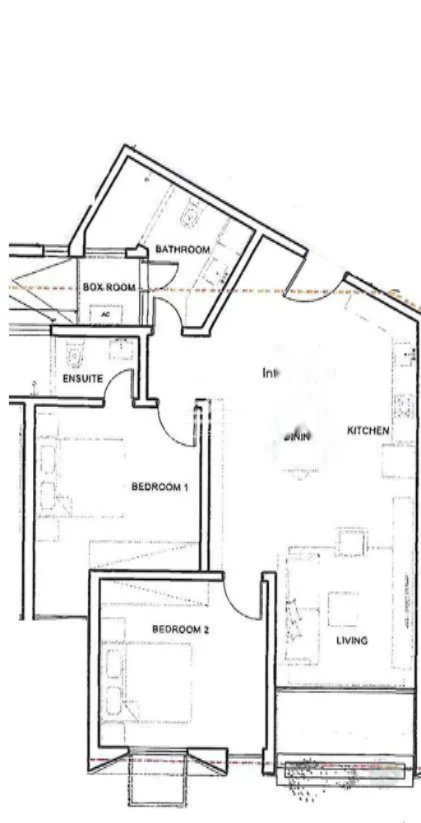 Квартира включает открытую планировку кухни, гостиной и столовой, две спальни, одна из которых с собственной ванной комнатой. Также имеется кладовая и гостевой санузел. Изюминкой квартиры являются два балкона в области открытой планировки и один в одной из спален.