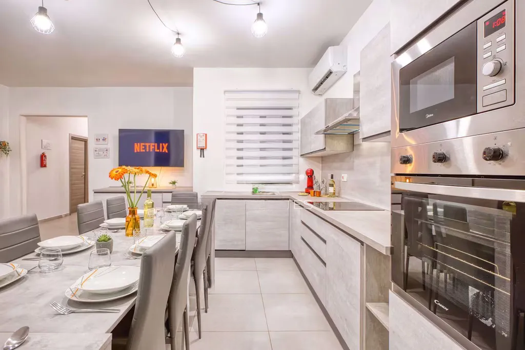SLIEMA — Свойство включает современную кухню, гостиную и столовую открытой планировки, четыре спальни с двуспальными кроватями и два ванных комнаты, предлагая достаточно пространства и комфорта. Благодаря яркому и светлому интерьеру, эта квартира спроектирована для практичной жизни в одном из самых привлекательных мест Мальты. ️