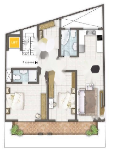 Первоклассная квартира на первом этаже, продается по плану. Включает три спальни, две ванные комнаты, открытую кухню/гостиную/столовую и балкон с видом. Она будет продана с полным завершением, включая кондиционеры, ванные комнаты, двери и подвесной потолок.