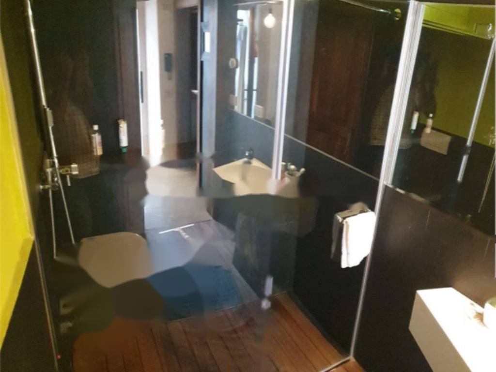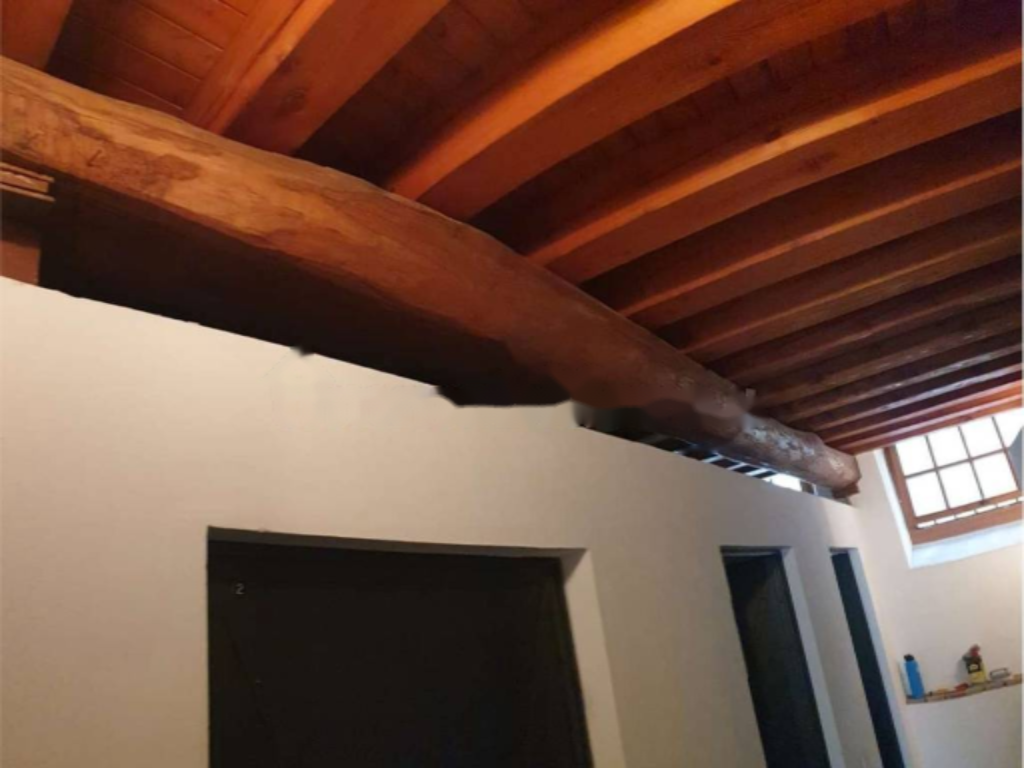 Внутри квартиры вас встречает небольшой коридор с местом для обуви или шкафа. Ванная комната прекрасно продумана: полы из дерева, душевой поддон из тика, полки из камня и оригинальные средства отопления. Потолки украшены открытыми деревянными балками, что придаёт интерьеру дополнительную привлекательность.