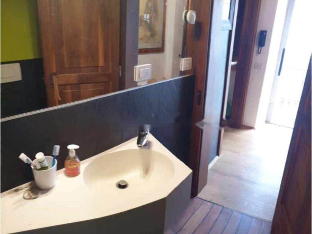 Квартира располагается на втором этаже и ведет к ней каменная буценированная лестница с железными перилами. Оригинальные оконные рамы, обрамленные камнем и коваными элементами, выходят на террасу из лиственничного дерева. Деревянные окна оснащены двойным остеклением и внутренними ставнями.