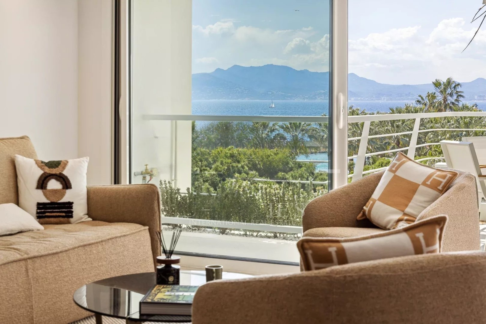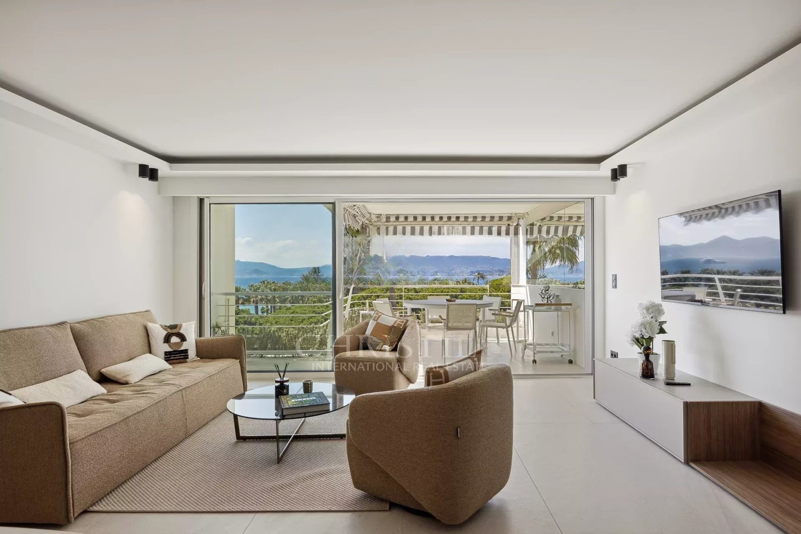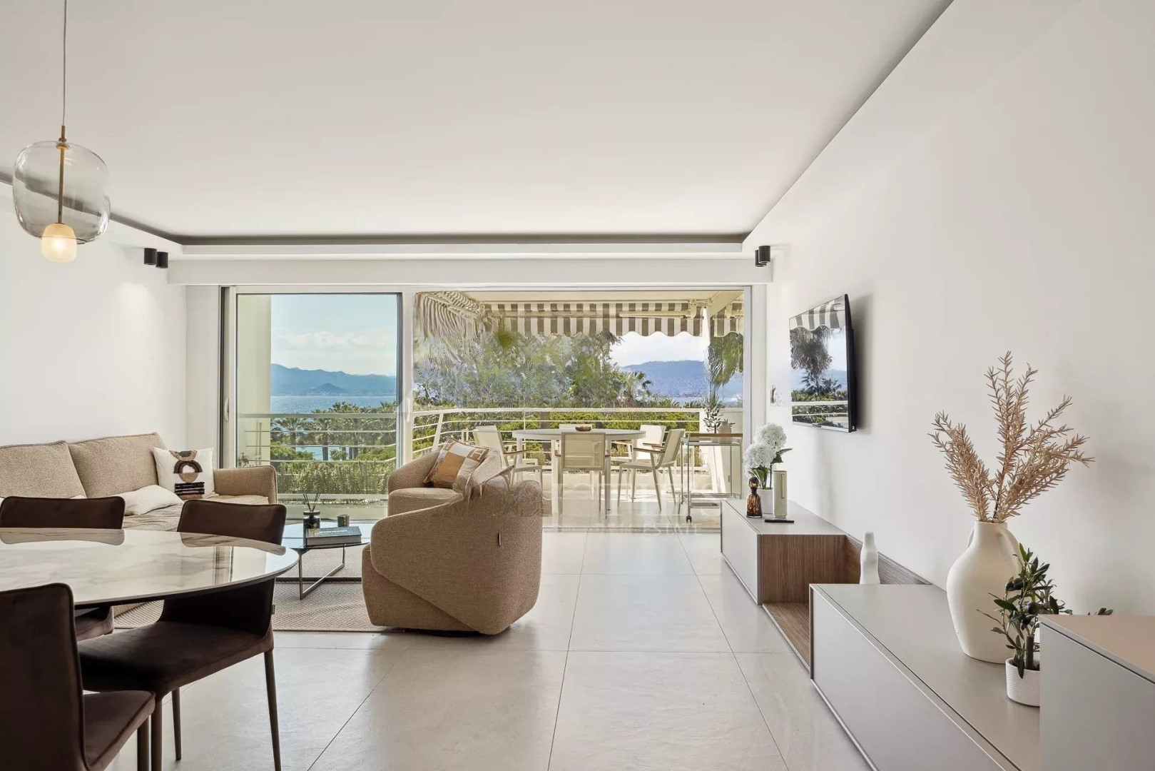 Квартира площадью 110 м², расположенная на 6-м и предпоследнем этаже резиденции на Круазетт, предлагает панорамный вид на море, бухту Канн и холмы Эстереля. ️