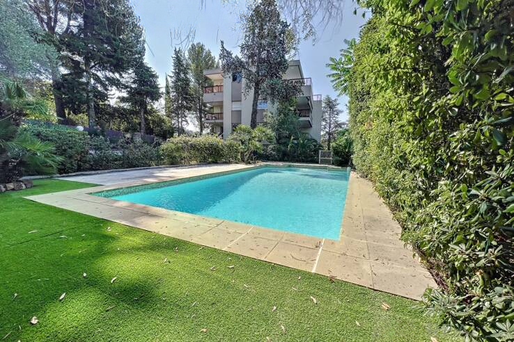 В резиденции высокого класса с бассейном, в абсолютной тишине, откройте для себя эту превосходную квартиру 3/4 комнат площадью около 100 кв.м. Включает в себя: прихожую, просторную гостиную/столовую, отдельную кухню, две спальни, каждая из которых располагает своей ванной комнатой или душевой, а также два туалета.