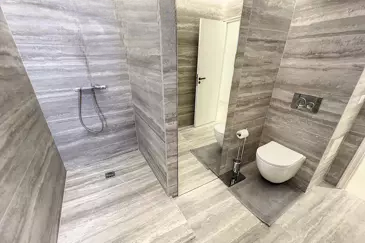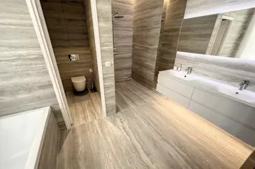 На этаже: 2 спальни с двумя ванными комнатами и санузлом.