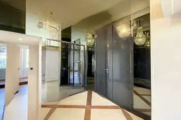 Основные характеристики включают просторную площадь 150 м² с красивой высотой потолков. Входная зона величественно подчеркивает старинное балюстрадное стекло.