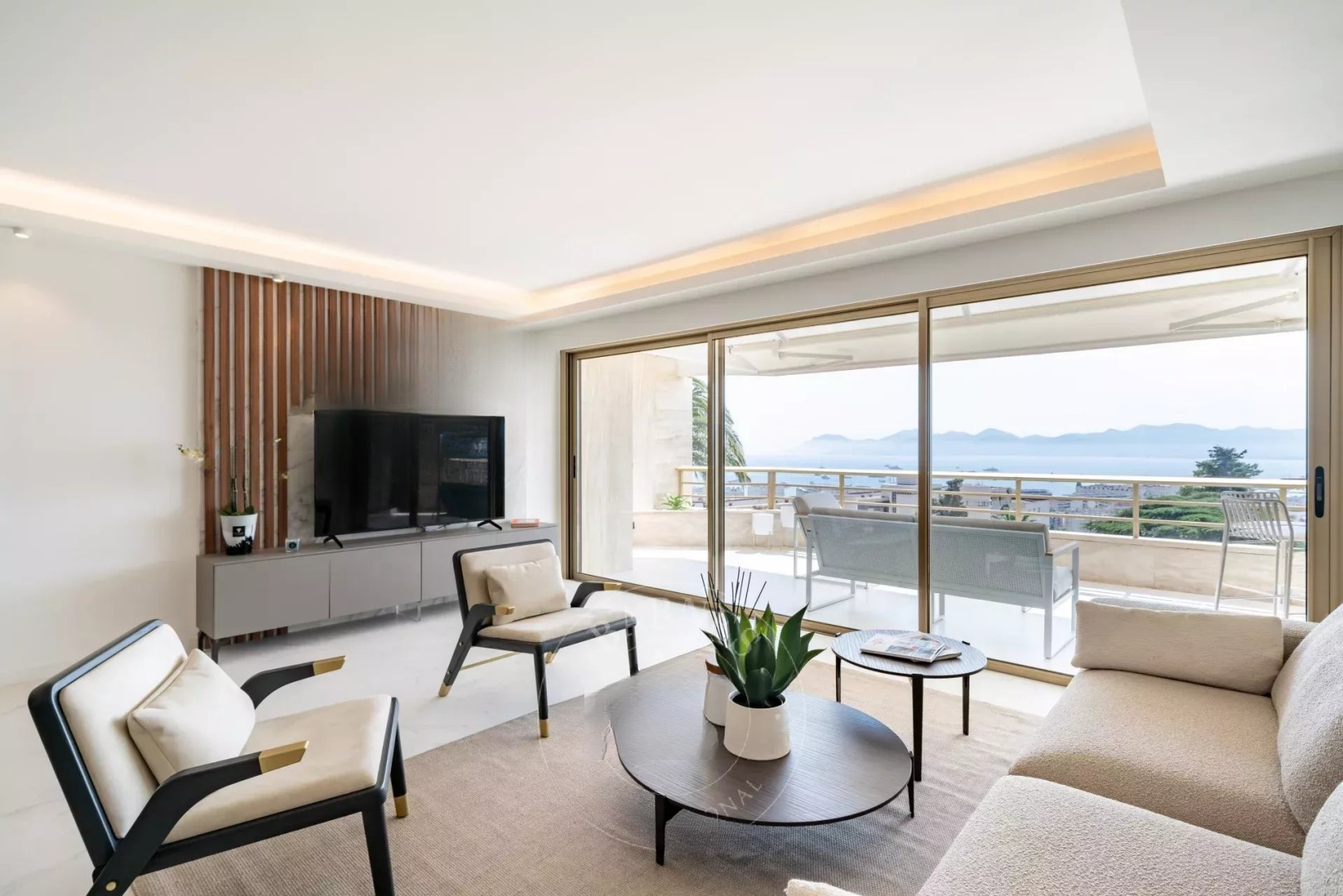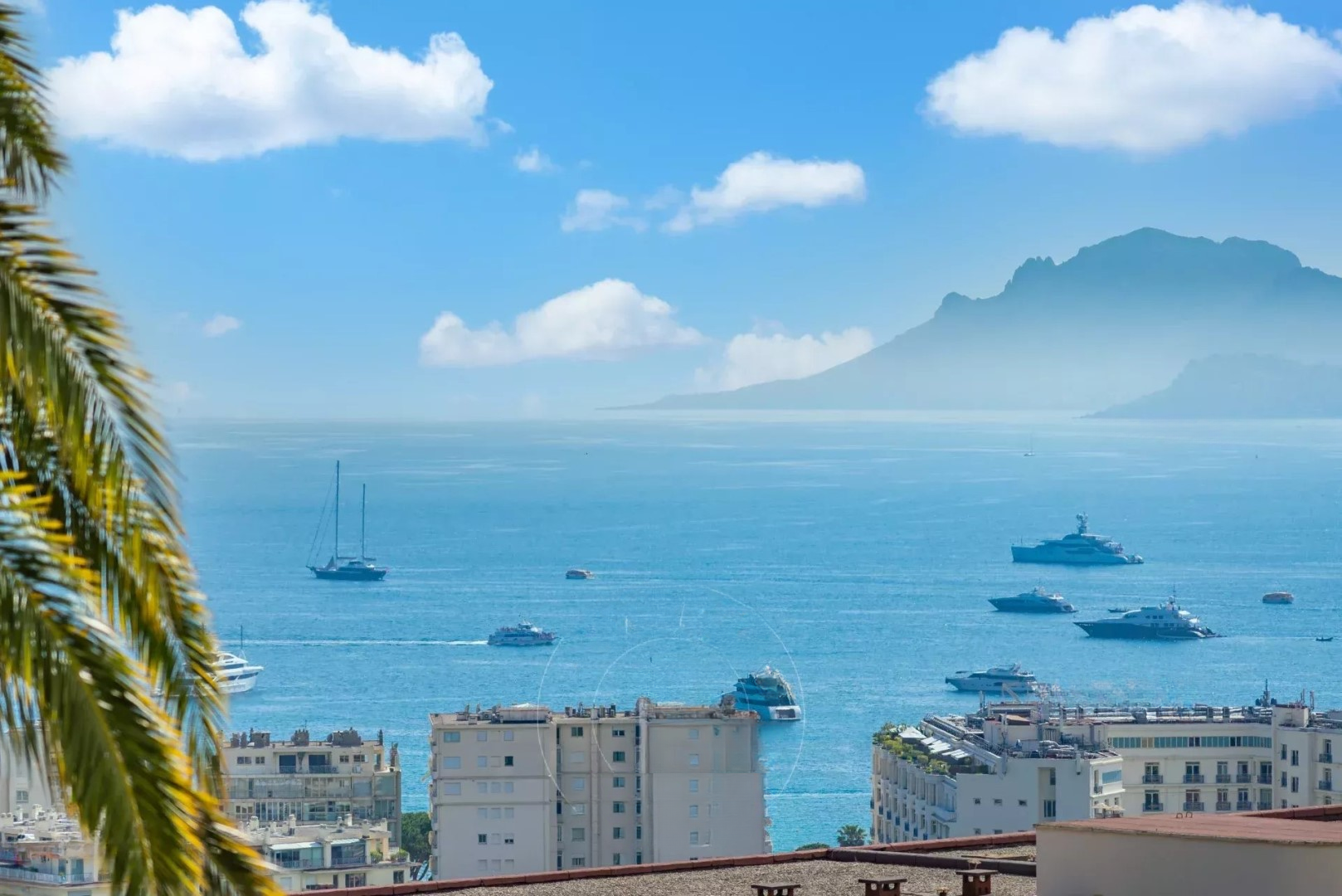 Канны, Басс Калифорни, в роскошной резиденции с охраной, красивым садом и крытым бассейном, очень красивая квартира с панорамным видом на море, расположенная на высоком этаже, общей площадью 92 м², дополненная большой и глубокой террасой площадью 28 м².