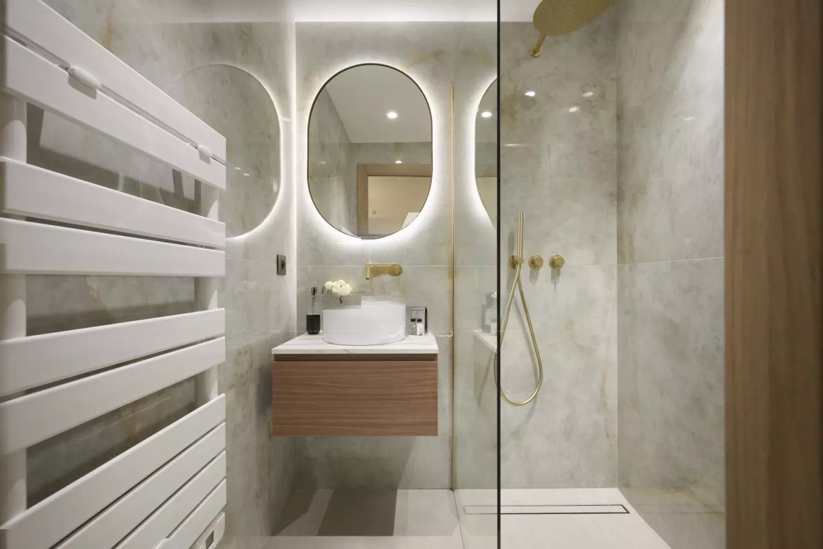 Включает просторную гостиную, полностью оборудованную кухню, а также 3 спальни с ванными комнатами.