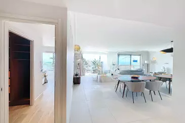 Она включает оборудованную открытую кухню, гостиную, выходящую на террасу с видом на море. 3 спальни с гардеробными и 2 ванные комнаты.