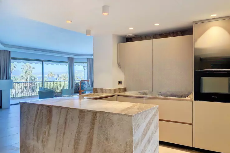 В районе Pointe Croisette, порт Canto, великолепная четырёхкомнатная квартира на высоком этаже с прекрасным видом на море и холмы Эстереля. Включает: вход, гостиная с выходом на террасу на юго-запад, оборудованная открытая кухня, 3 спальни, 3 душевые, гостевой туалет, подвал и коллективная парковка.