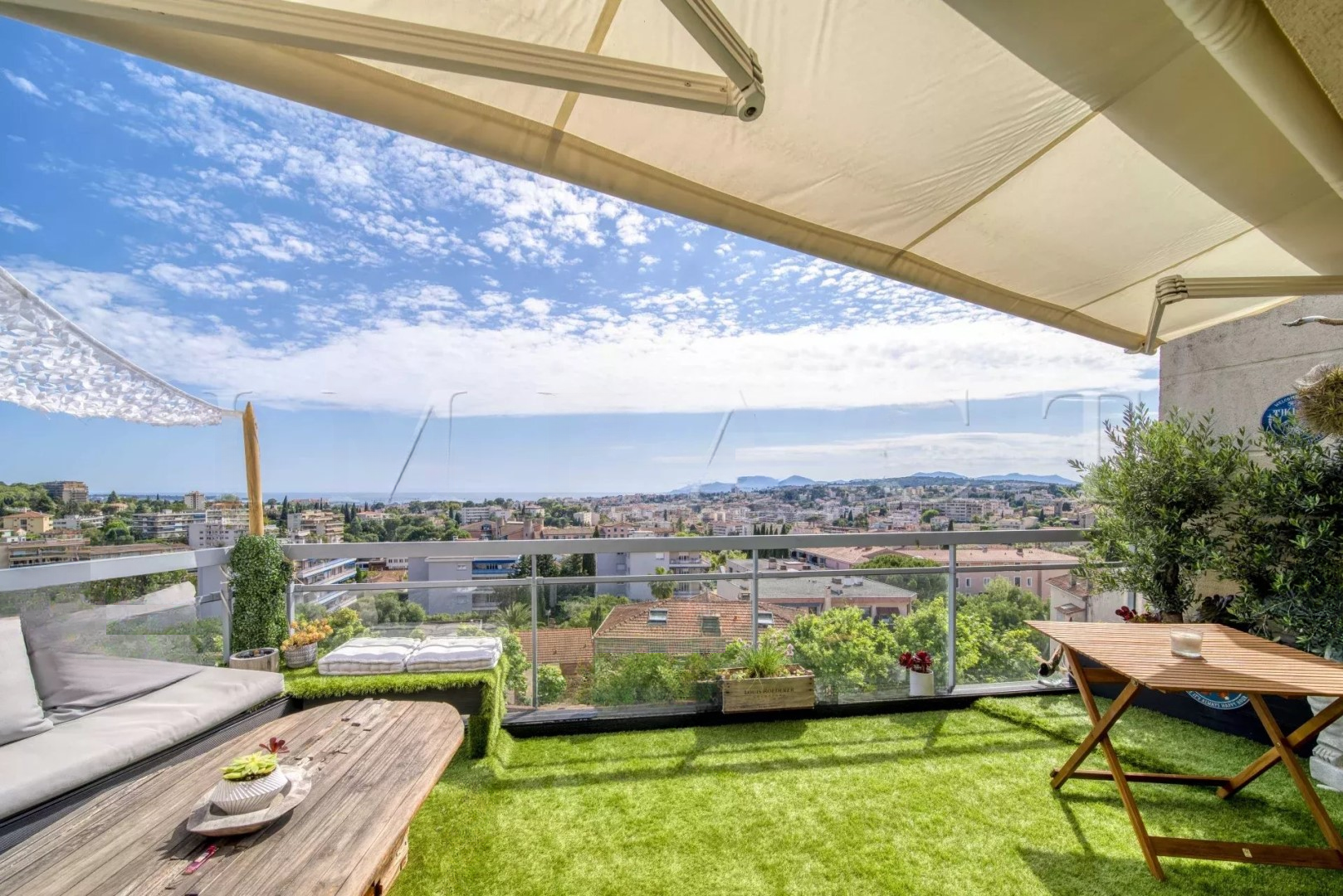 Вас очарует вид на море и массив Esterel. Вы сможете насладиться просторной гостиной с открытой кухней и 3 спальнями, включая одну мастер-спальню.