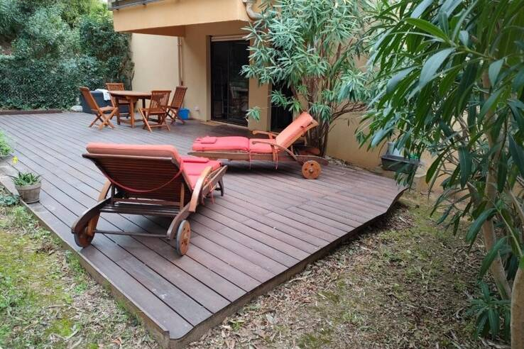 Эта квартира расположена в районе Basse Californie в Каннах, в резиденции с прекрасным парком, всего в 5 минутах ходьбы от моря и в 15 минутах от Круазетт. Вам предлагается двухкомнатная квартира на первом этаже с террасой площадью 70 м².
