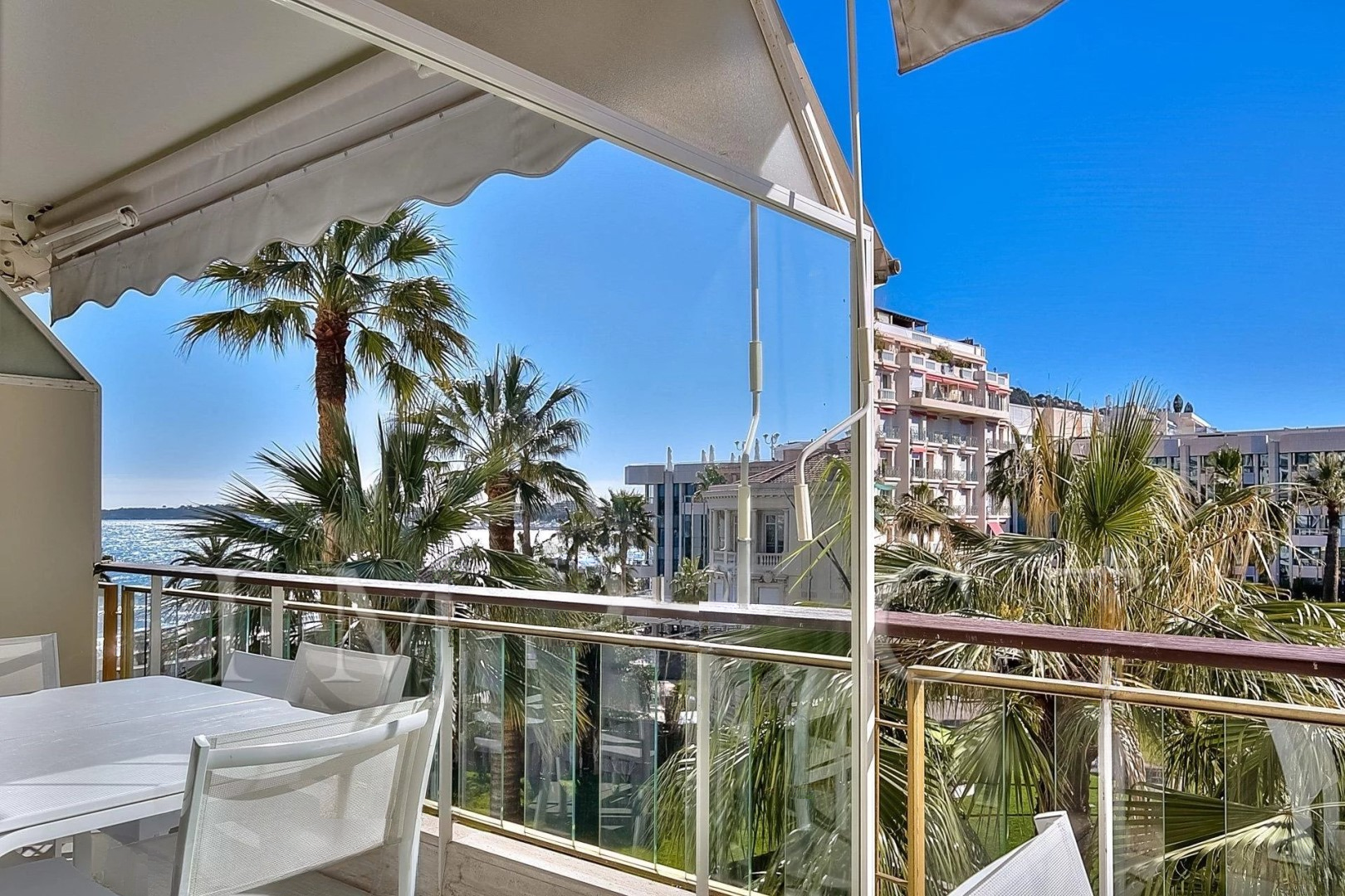 Квартира площадью 60 м² расположена в Grand Hôtel и предлагает великолепный вид на парк и море. Она включает в себя прихожую, жилую зону с открытой планировкой кухни, которая выходит на террасу площадью 8 м².