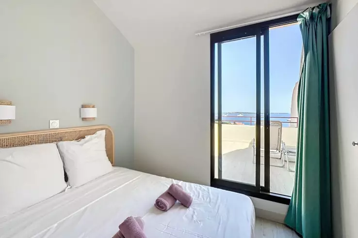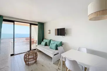 Она включает вход, гостиную с кухней, две спальни и две ванные комнаты, каждая с туалетом. Просторная терраса с панорамным видом на море.