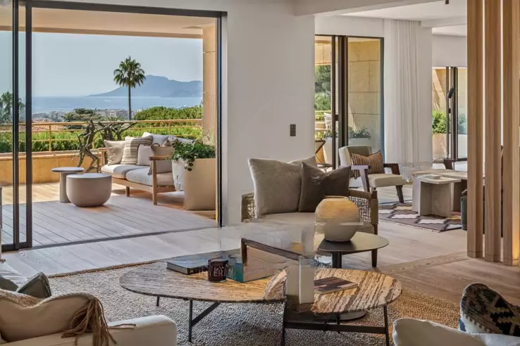 Расположенная в престижном районе Калифорния в Каннах, в центре эксклюзивной резиденции с охраной, парком и бассейном, эта исключительная квартира площадью 248,17 м² (215,50 м² по закону Каррез; и независимая студия 32,67 м²) предлагает очень красивую террасу размером 60 м² с панорамным видом на Средиземное море и острова Лерин. Полностью отремонтированная известным местным архитектором с использованием благородных материалов высокого качества, квартира оформлена в современном стиле с элементами роскоши.