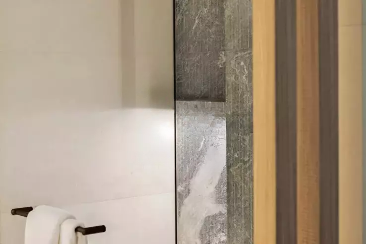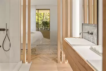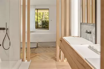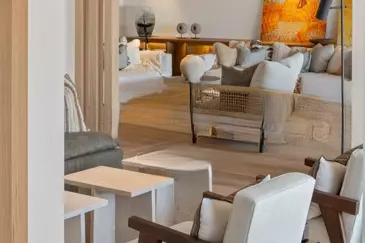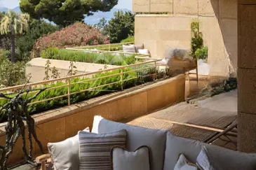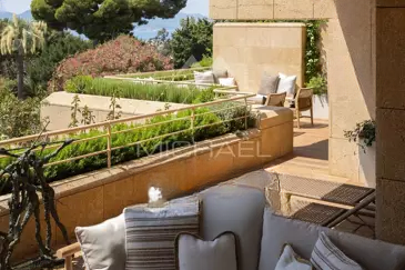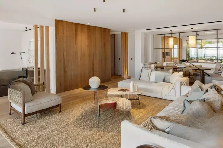 Светлое пространство без соседей, скрытая от посторонних взглядов, квартира включает большую прихожую, просторную гостиную-столовую, переходящую на террасу, современную кухню, оборудованную и закрытую стеклянной перегородкой, зону для просмотра ТВ, главную спальню с гардеробной и ванной, с личным выходом на террасу и видом на море, две спальни с ванными и отдельными балконами, прачечную для функциональности. Также имеется независимая студия 32,67 м², две кладовые и парковочное место, что делает объект особенно привлекательным .