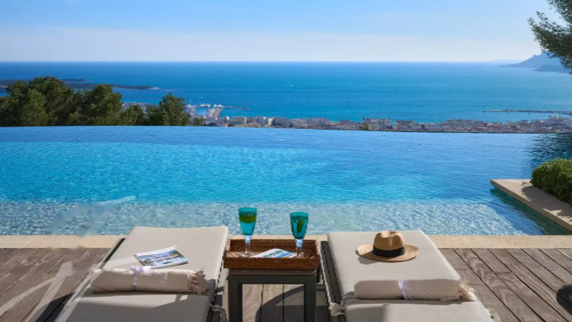 На ухоженном участке площадью около 7700 м², образцово структурированном, зона бассейна приглашает к расслаблению в атмосфере Средиземного моря. Она оборудована крытой террасой со спальной зоной и летней кухней с баром, а также душем и туалетом. Бесконечный бассейн, который можно подогреть, включает джакузи.