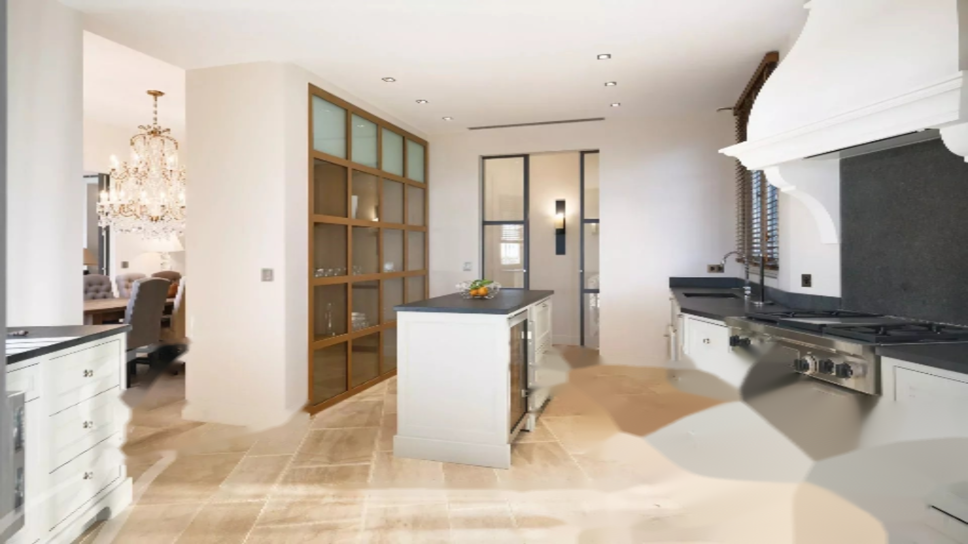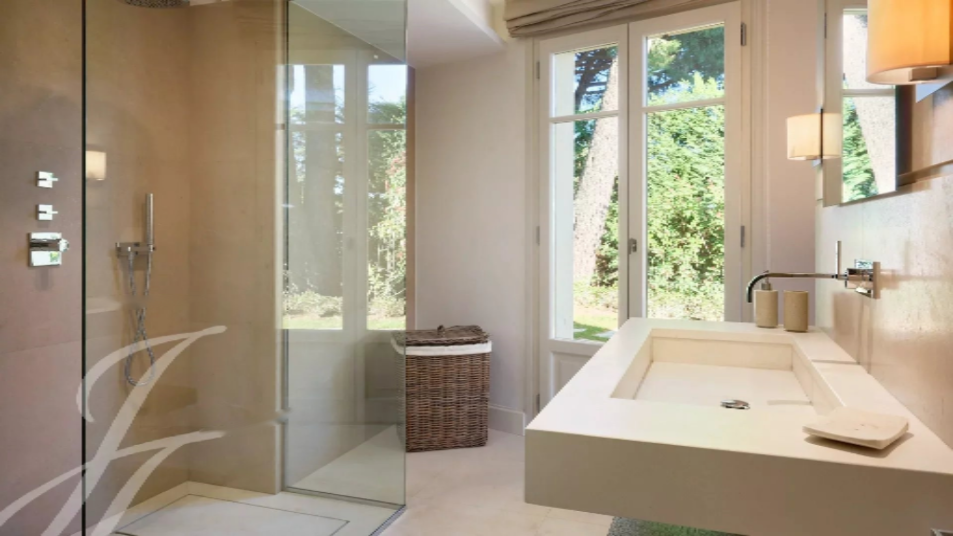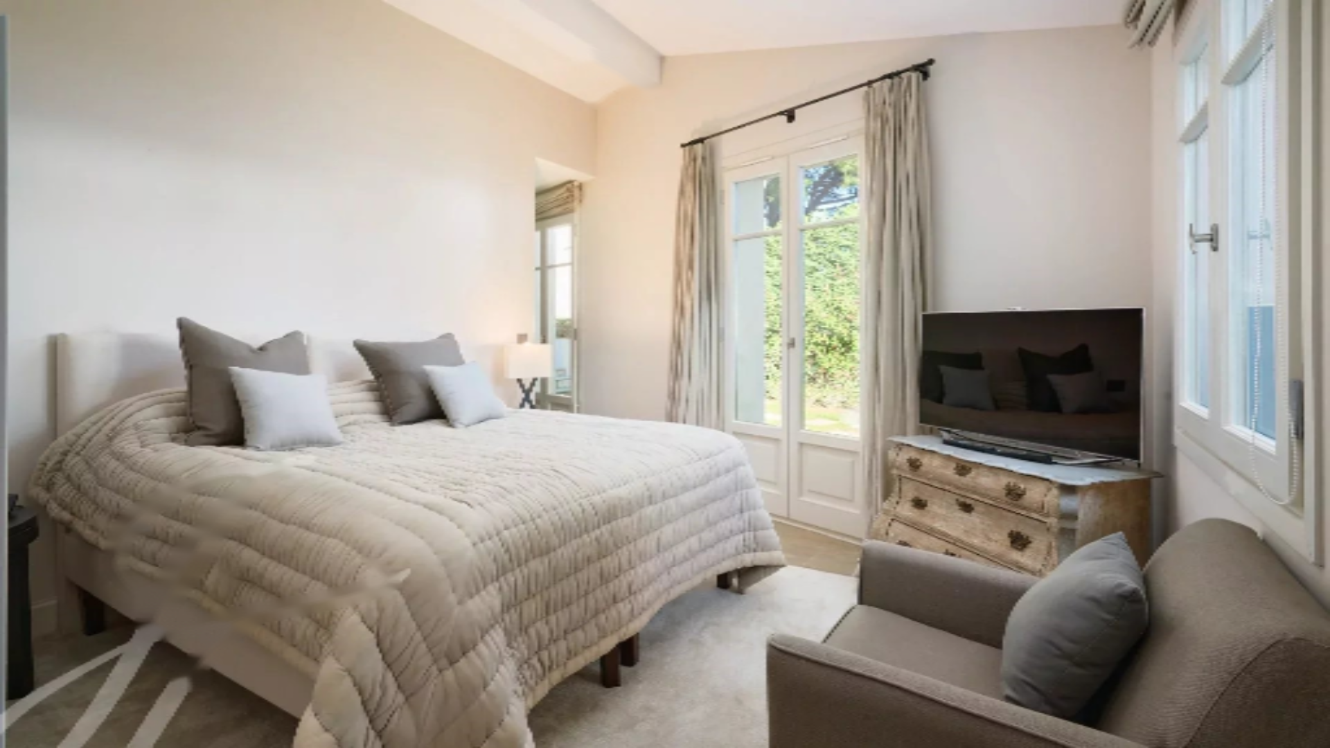 На уровне сада: просторная гостиная с уголком для камина с выходом на террасу, столовая, также выходящая на террасу, ведущую к крытой террасе, оборудованной летней столовой и туалетами для гостей, прекрасная кухня с винным погребом, открывающаяся на террасу, вторая полностью оборудованная кухня с прачечной, а также спальня с душем.