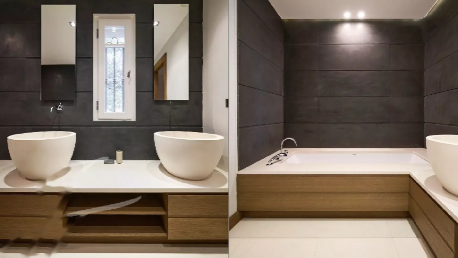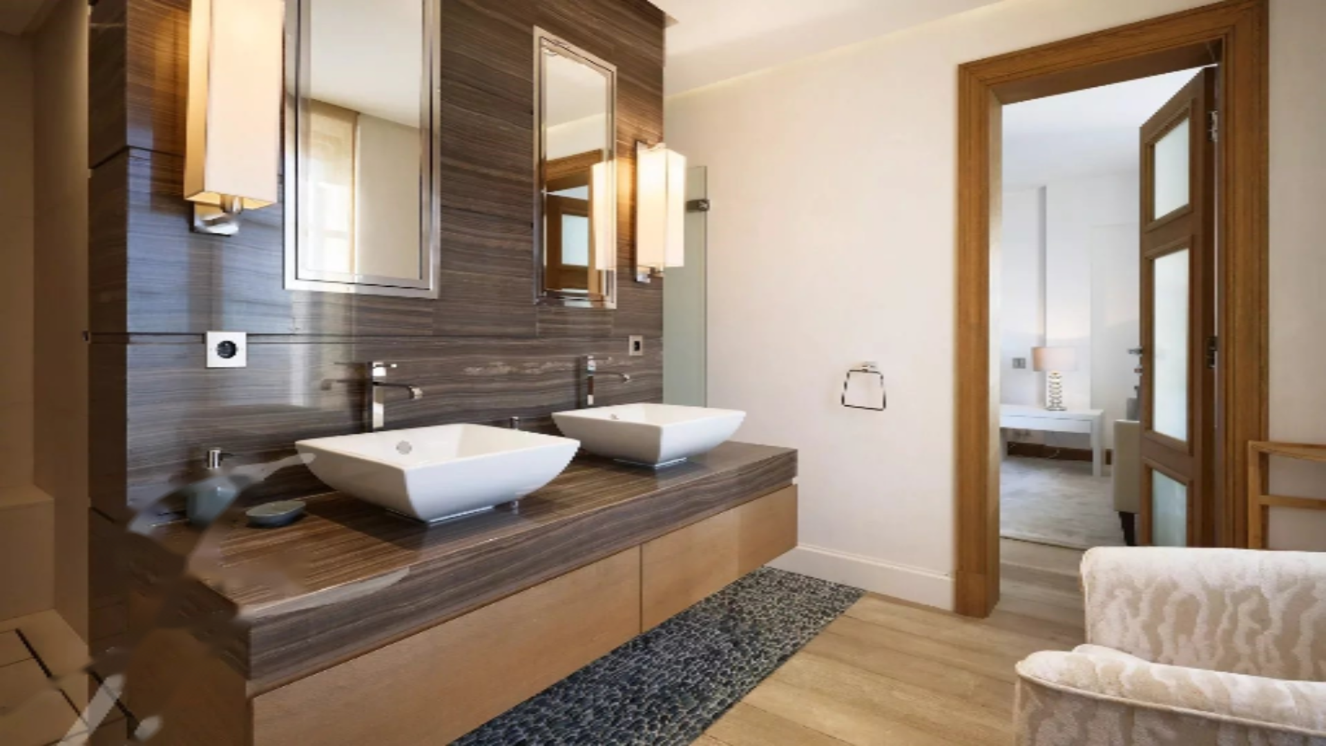 Планировка виллы, как внутри, так и снаружи, рассчитана на комфорт своих жильцов. На первом этаже: вход, основная спальня с выходом на южную террасу с видом на море, гардеробная, ванная комната, душ и туалет; вторая спальня с выходом на террасу с видом на море, душевая и туалет; третья спальня с выходом на террасу с видом на море, гардеробная, ванная комната и отдельные туалеты.