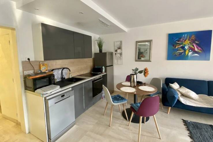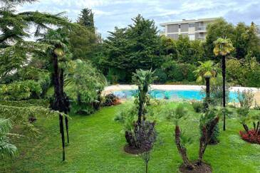 Канны Монроз — четырехкомнатная квартира площадью 86,14 кв. м по Carrez, с красивой террасой площадью 14 кв. м и двумя балконами. Квартира расположена среди зелени в престижной коттеджной застройке с консьержем и бассейном. Тихий район для комфортной жизни.
