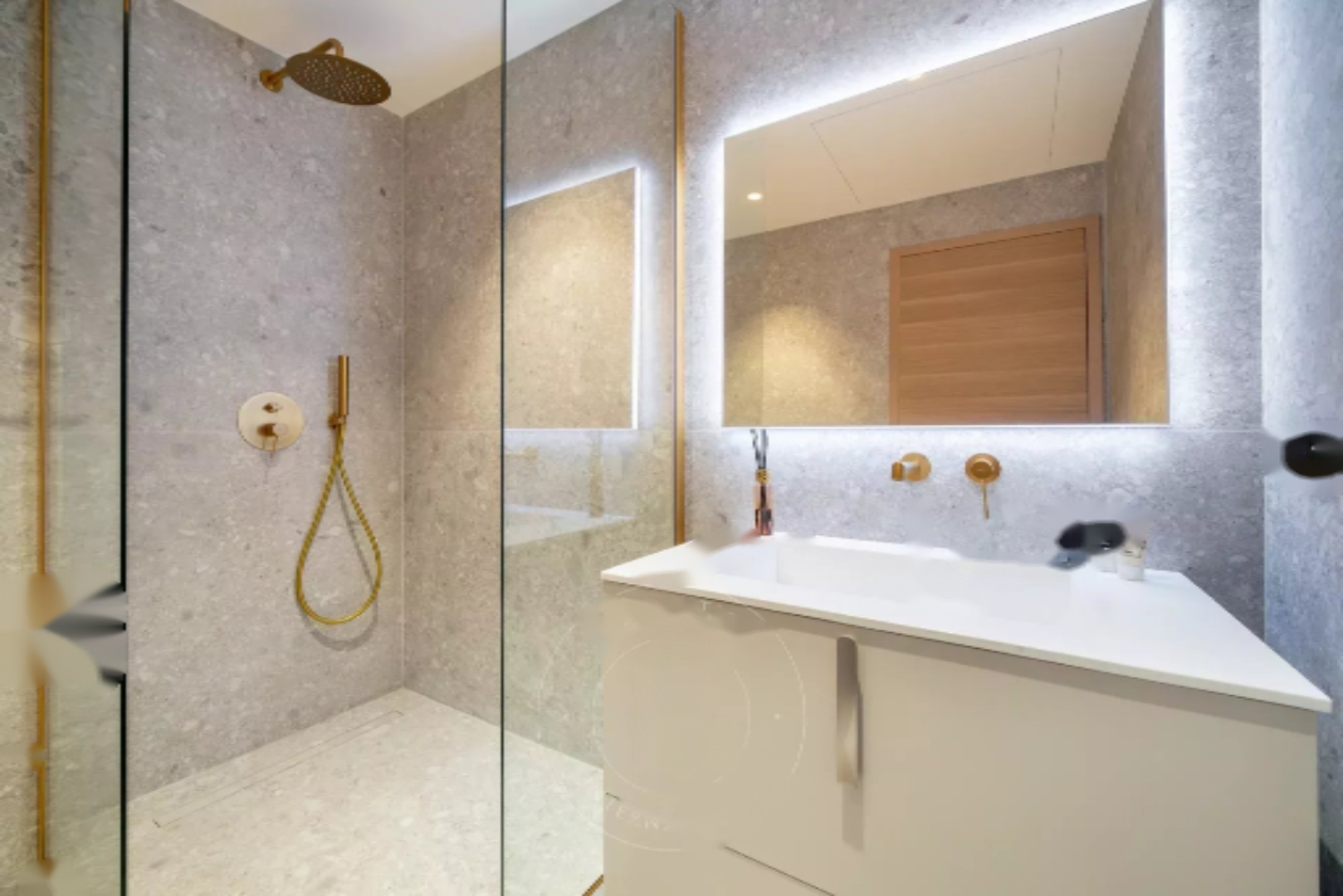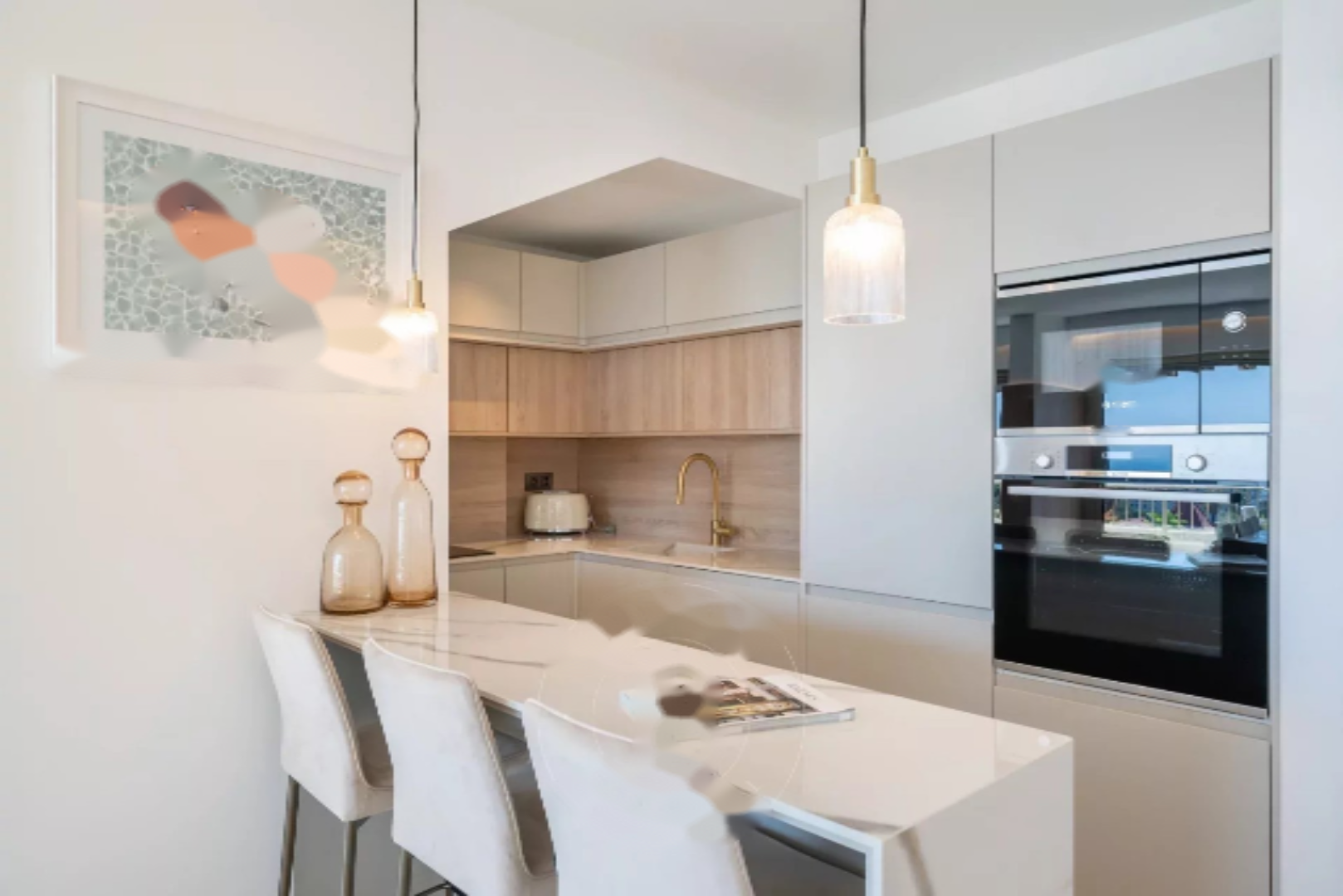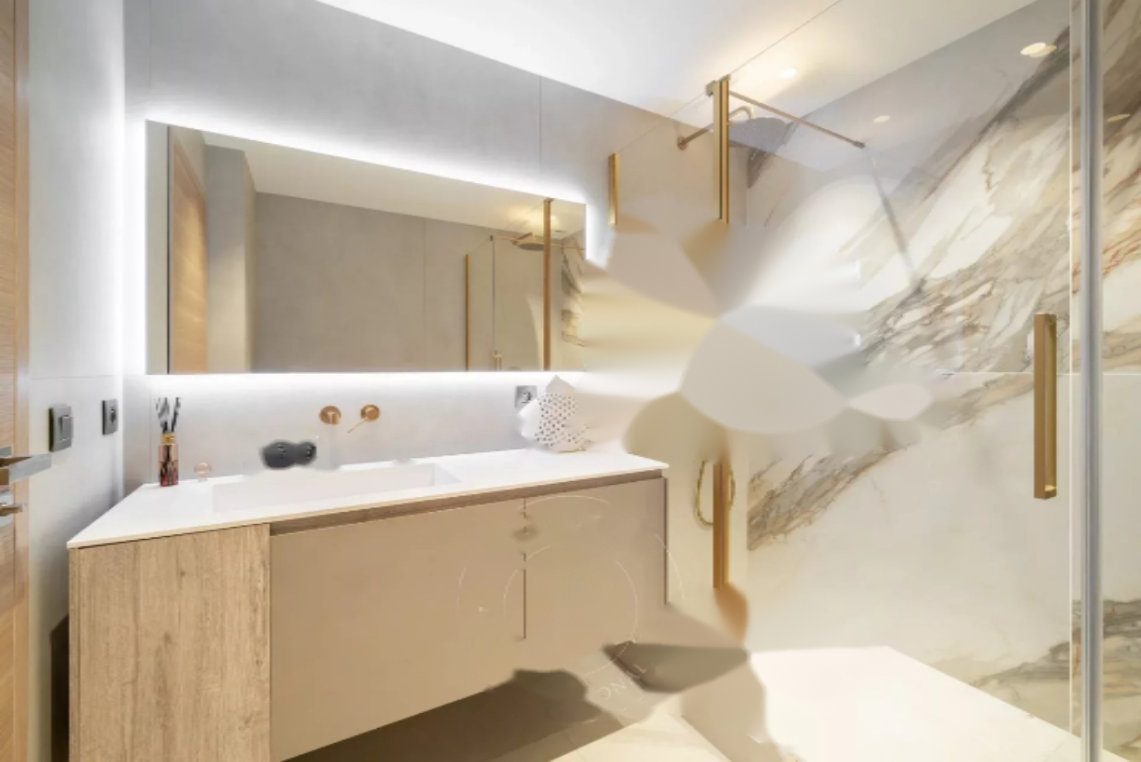 Состоит из прихожей, просторной гостиной с открытой и оборудованной кухней, выходящей на южную террасу с панорамным видом на море, мастер-спальни с гардеробной и душевой, а также 3 спален с ванными комнатами, каждая своя.