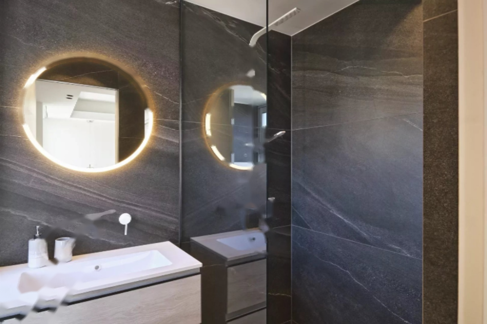Полностью отремонтированный с использованием высококачественных материалов, он включает в себя просторную гостиную с открытой кухней, три спальни, каждая со своей ванной комнатой, а также террасу площадью 11 м² с юго-западной экспозицией.