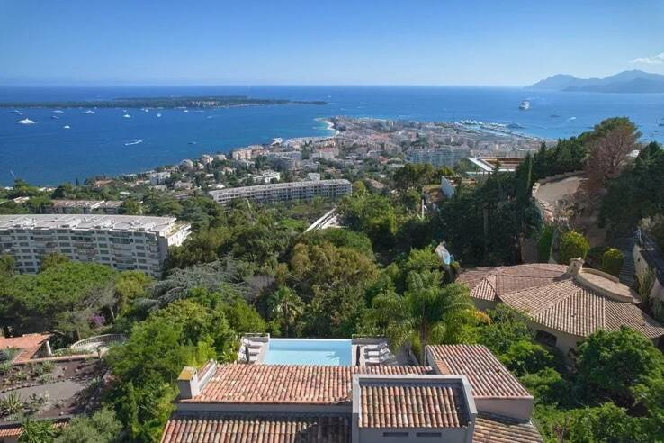 Откройте для себя эту великолепную виллу площадью 350 м², идеально расположенную в престижном районе Калифорния в Каннах, предлагающую исключительный панорамный вид на Средиземное море и острова Лерин. ️