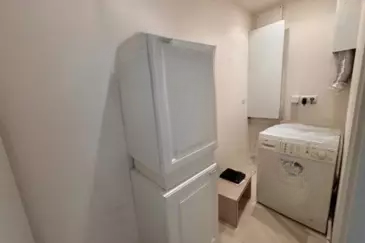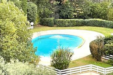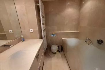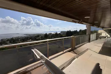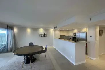 Большая жилая площадь с оборудованной американской кухней, выходящей на просторную южную террасу, главная спальня с гардеробной и ванной комнатой, вторая спальня с ванной. Прачечная. Квартира с кондиционером. (Т4 преобразованный в Т3)