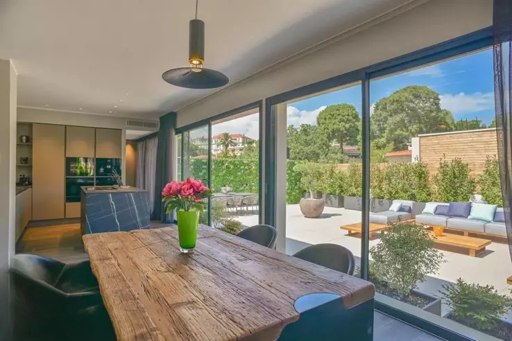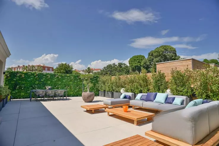 Редкая и великолепная квартира на последнем этаже, вблизи Круазет, но в то же время спокойная и рядом со всеми удобствами в небольшом полностью обновленном комплексе, окруженном зеленью. Она включает: прихожую, гостиную с открытой и высококлассной кухней, выходящую на большую террасу под открытым небом площадью 120 кв. м, без вида на соседей и полностью обустроенную и озеленённую, прачечную, две спальни с гардеробной и душевой, кабинет и гостевой туалет.