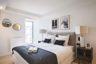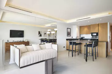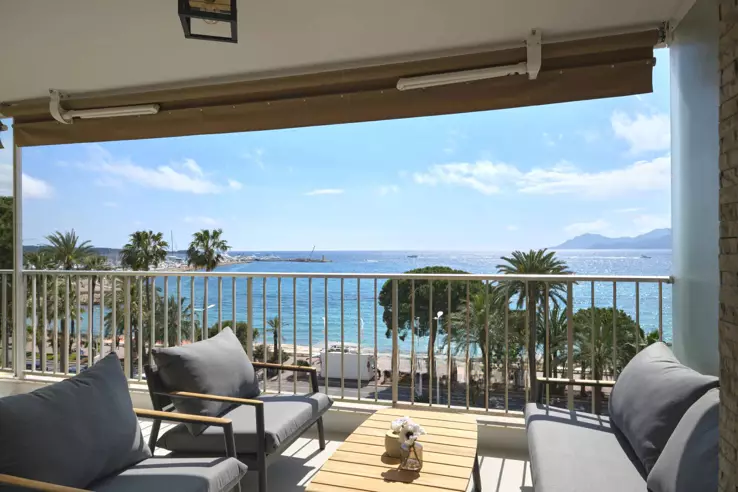 КРУАЗЕТ – Великолепная сквозная квартира, расположенная на 5-м этаже престижной резиденции на бульваре Круазетт, состоит из просторной гостиной с оборудованной кухней открытого плана, выходящей на террасу с панорамным видом на залив Канн, гостевого туалета и двух спален с собственными ванными комнатами. ️