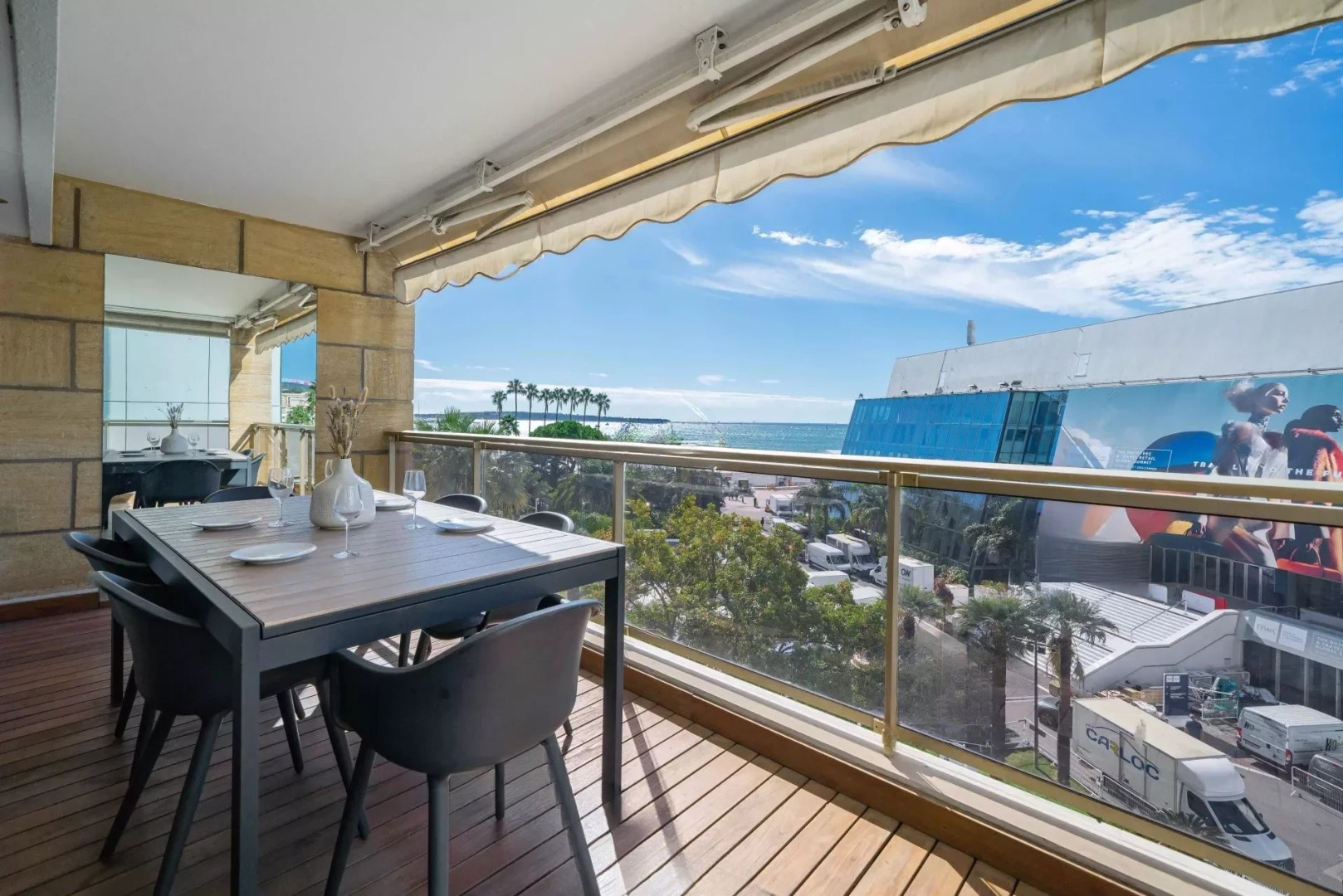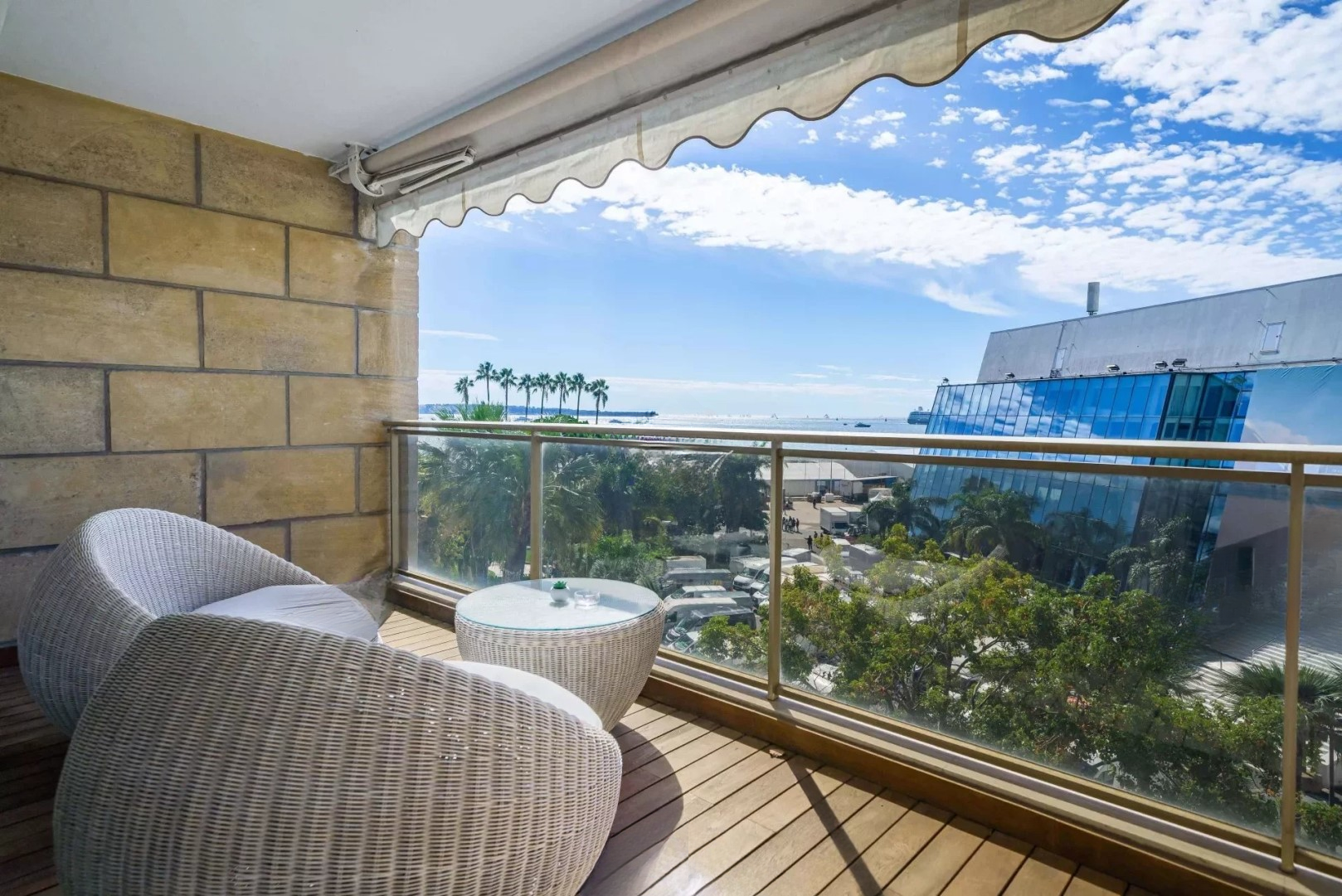 Эксклюзивное предложение! Апартамент на 5-м этаже престижной резиденции напротив Дворца фестивалей и выше знаменитого бутика CHANEL. Площадь составляет 111,15 м² (102,73 м² по закону Carrez), открывается захватывающий вид на легендарную красную дорожку и море.