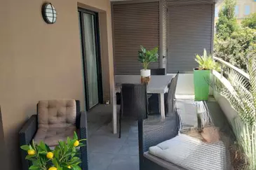 Продается квартира в роскошной охраняемой резиденции 2015 года с консьержем. Очаровательные 2 комнаты площадью 43 м² с крытой террасой 18 м², ориентированной на юг.
