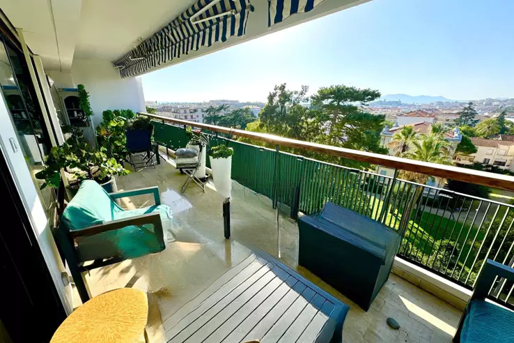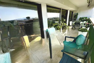 Канны Монфлери, в престижной резиденции на высоком этаже с видом на море и горы, восточное и западное освещение. Просторная квартира с 3 комнатами площадью 105,47 м² выходит на глубокую террасу 24 м². ️ Отдельная кухня, гостиная, 2 спальни, 2 ванные комнаты, туалеты, подвал и гараж.