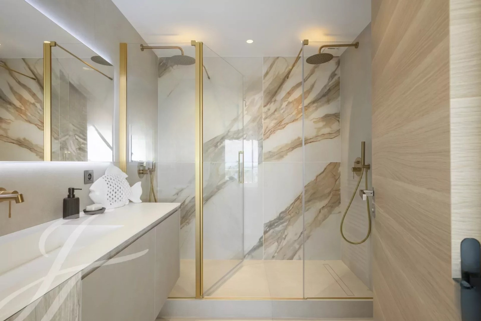 Общая площадь составляет около 120 м². Включает гостиную с открытой кухней, 4 спальни люкс и очень большую южную террасу площадью 33 м².