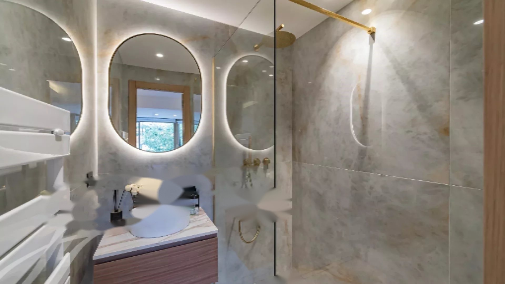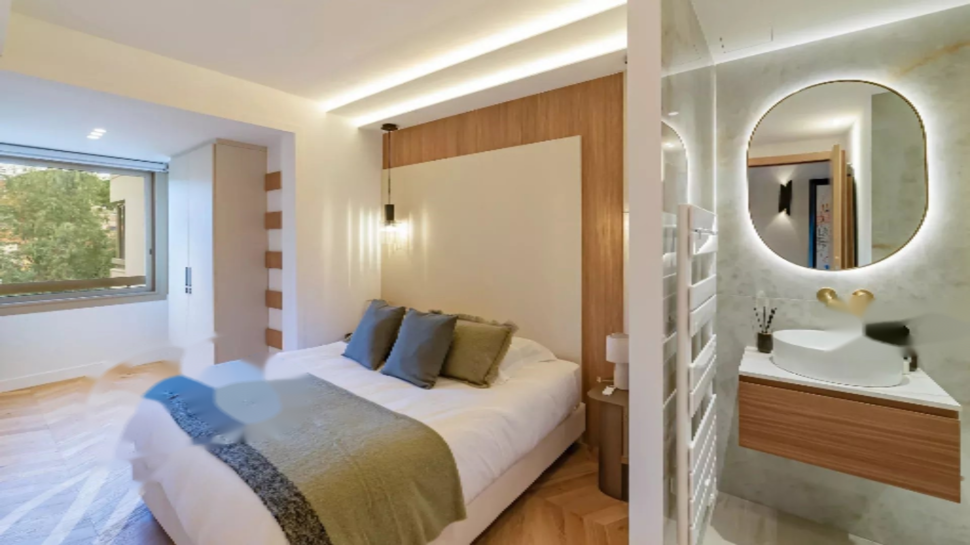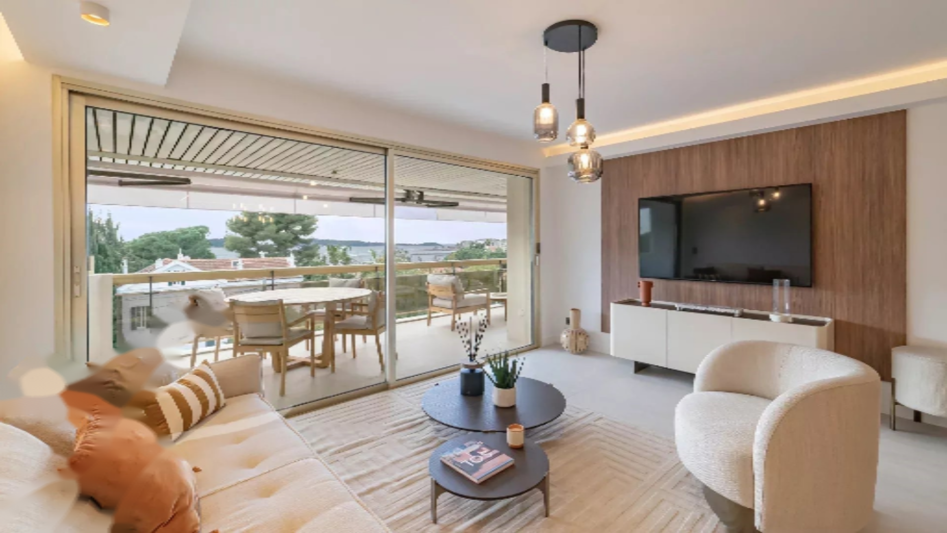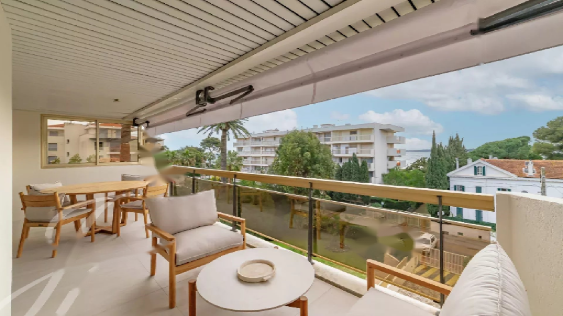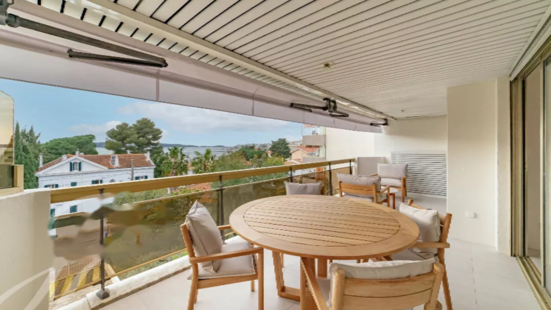 Апартамент предлагает площадь около 100 м², которая продолжается великолепной террасой в 21 м² с видом на море. Он состоит из гостиной, полностью оборудованной кухни, и трех спален с ванными комнатами, каждая с собственной душевой.