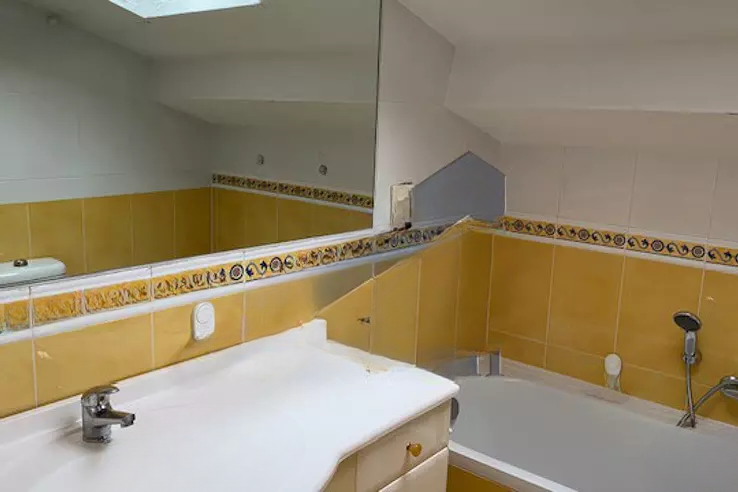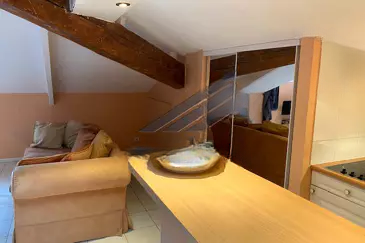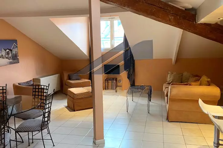 На последнем этаже здания с вечным шармом эта трехкомнатная квартира нуждается в обновлении, с открытыми балками и высокими потолками, предлагая великолепные объемы и уютную атмосферу. Включает прихожую с встроенным шкафом, просторную гостиную/столовую, залитую светом, с встроенной мини-кухней, а также две просторные спальни - каждая с встроенным шкафом, и две элегантные ванные комнаты.