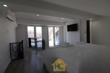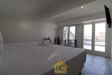 В доме османского типа напротив вокзала, на 4-м этаже с лифтом, недавно отремонтированная квартира площадью 53,80 кв.м (79,12 кв.м обитаемая).