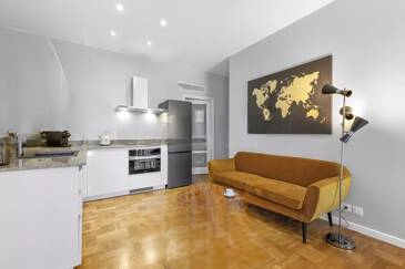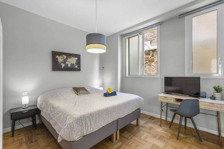 Откройте для себя эту превосходную квартиру на первом этаже площадью около 69 м², расположенную в полностью отремонтированном здании, сочетающем аутентичное очарование и современный комфорт. С самого входа вас покорят высококачественные отделочные материалы и теплая атмосфера.
