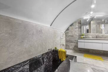 Квартира включает в себя приветливый входной холл, гостиную/кухню и две спальни, каждая с собственной ванной или душевой комнатой и туалетом, обеспечивая оптимальный комфорт. Пол из массивной паркетной доски добавляет элегантности и характера всему помещению.