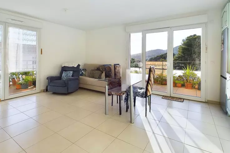 Светлая угловая квартира с 3 комнатами, площадью 64 м², в недавней резиденции, соответствующей стандартам для инвалидов, с двумя террасами, гаражом, подвалом и красивым садом в окружении. ✨