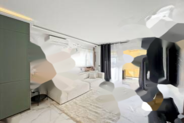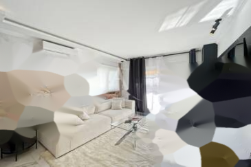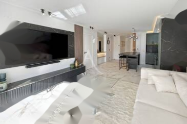 В квартире просторная, светлая гостиная с американской кухней, выходящей на большую террасу с южной ориентацией, без соседей напротив. 2 просторные спальни, одна из которых также имеет выход на террасу. Очень красивая душевая комната.