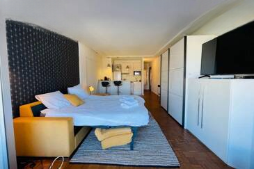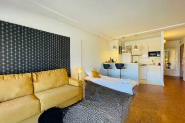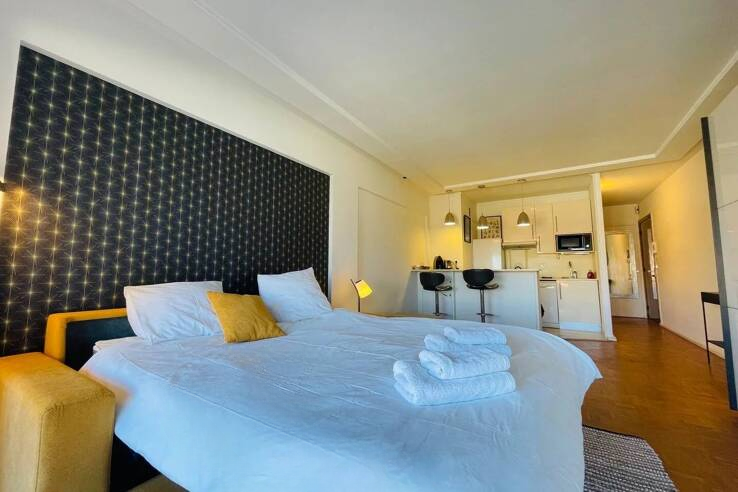 Расположен в Каннах, в престижном районе "Круазет", в элитной резиденции. Студия площадью 34,49 м² по закону Каррез включает в себя: вход, жилую комнату с кухней, выходящей на балкон, ванную комнату и гостевой туалет.