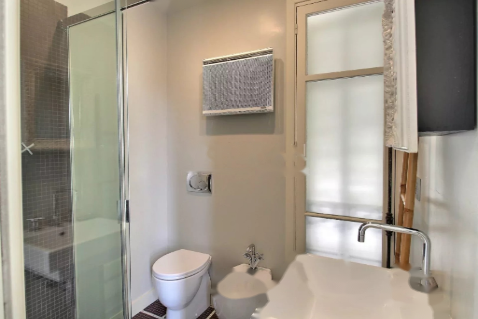 ✨ В центре уникальной недавно отремонтированной собственности, открывается удивительный двухкомнатный апартамент и независимая студия, полностью обновлённые с изяществом, с общей площадью 97 м². Основной апартамент начинается с прихожей, ведущей в светлую гостиную с обеденной зоной, выходящей на первый балкон. Современная и полностью оборудованная отдельная кухня дополняет это жилое пространство. Насладитесь просторной спальней с гардеробной и ванной комнатой с туалетом. Для удобства добавлены отдельный гостевой туалет и прачечная.