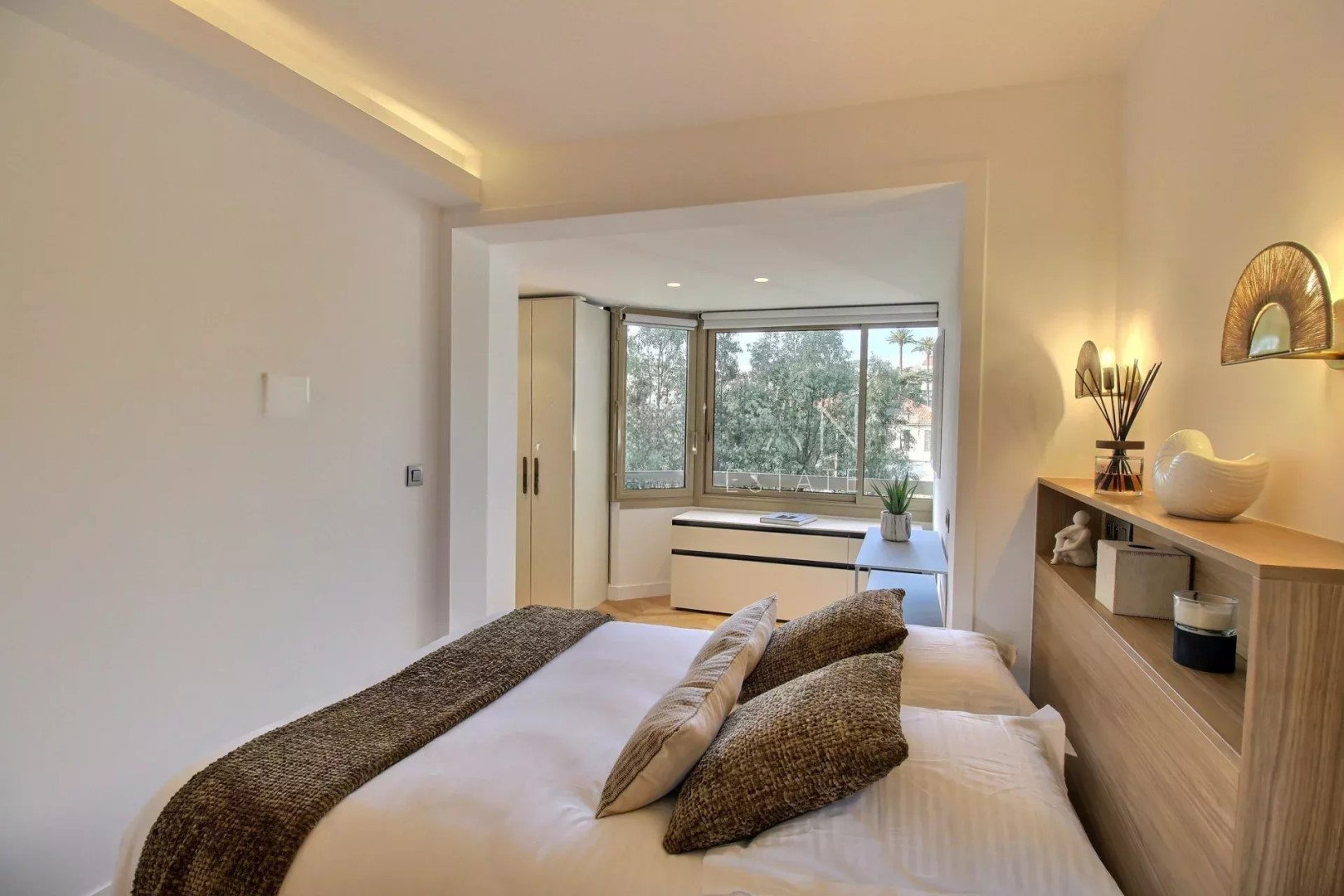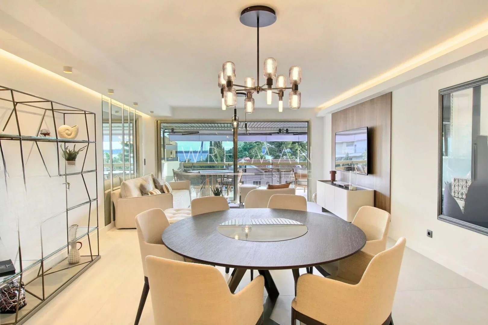 Она предлагает просторную и светлую гостиную с полностью оборудованной открытой кухней, ведущей на большую террасу с потрясающим видом на море и острова Лерин.