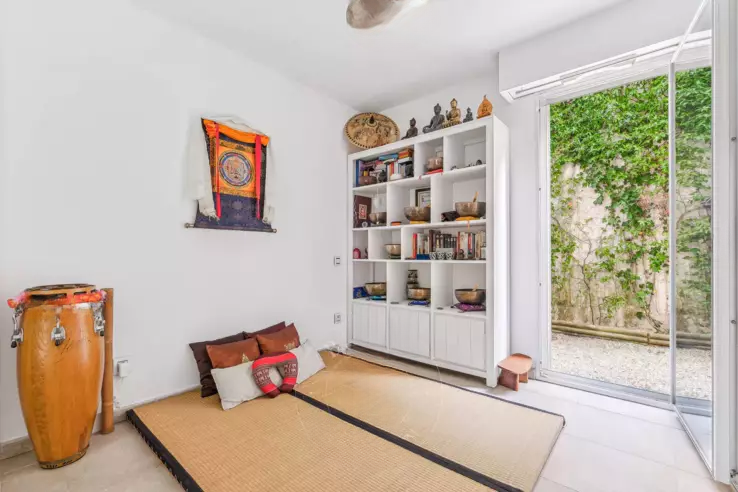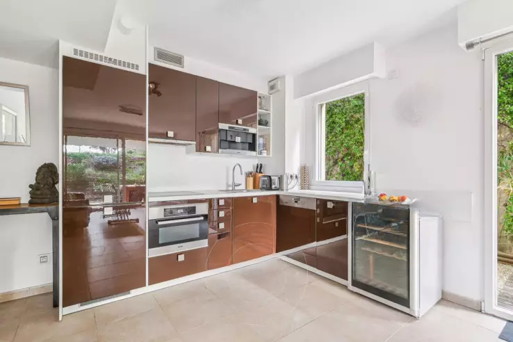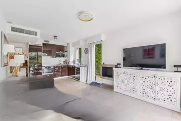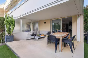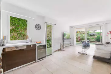 В престижном районе Californie в Каннах, в современной резиденции с бассейном и парком, вас ждет этот стильный садовый апартамент площадью 56 м².