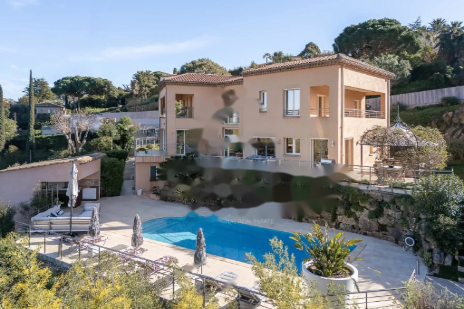 Сад площадью 2600 м², полностью засаженный средиземноморскими растениями, с площадкой для игры в шары, подогреваемым соляным бассейном и полностью оборудованным домиком у бассейна создают атмосферу роскошной и расслабляющей жизни.